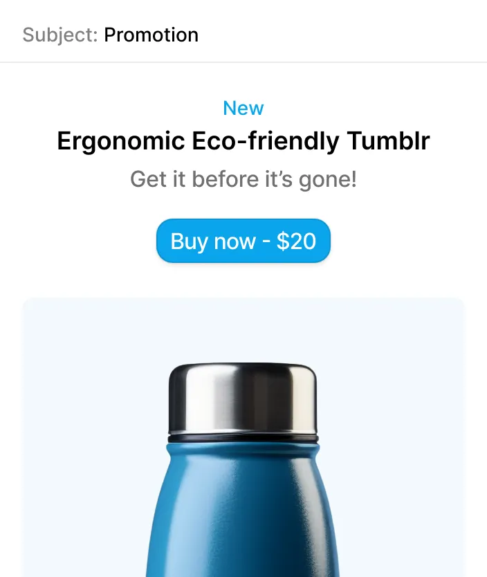 Craft beautiful, professional emails without any technical skills using our intuitive drag-and-drop builder. Choose from hundreds of customizable templates to get started quickly.